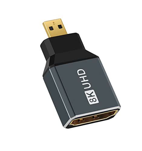 Twozoh 8K Micro HDMI-adapter (1-pack), 2,1 mikro-HDMI-hane till standard HDMI hona adapter omvandlare stöder 8K@60Hz, 4K@144Hz, 2K@240Hz