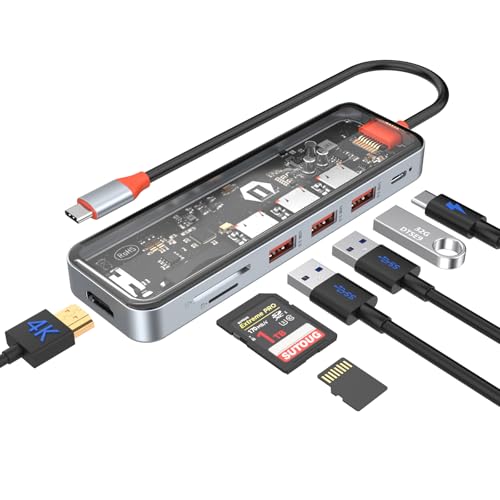 Djurklass USB C-hub, 7-i-1 USB C till HDMI-adapter med 4K HDMI, 100 W PD, 3 USB-A-port, TF/SD-kortläsare, USB C-dockningsstation för MacBook Air/Pro och flera typer C-enheter