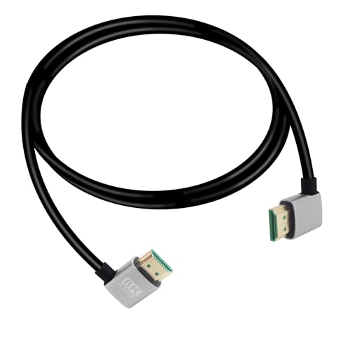 RIIEYOCA 90 grader vänster vinkel HDMI-kontakt till 90 graders höger vinkel HDMI-kontakt, 48 Gbps High Speed 2.1 stöder 8K@60 Hz, ARC, 3D för DVR, HDTV (1M)