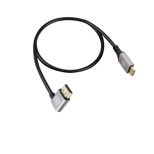Alvin's Cables 8K 2.1 HDMI-kabel Höghastighets för Atomos Ninja V-Skärm Rak till Vänster Vinkel HDMI-sladd för Z CAM E2, för Sony FS5| FS7| A7S3-kameror 19,7 tum | 50 cm