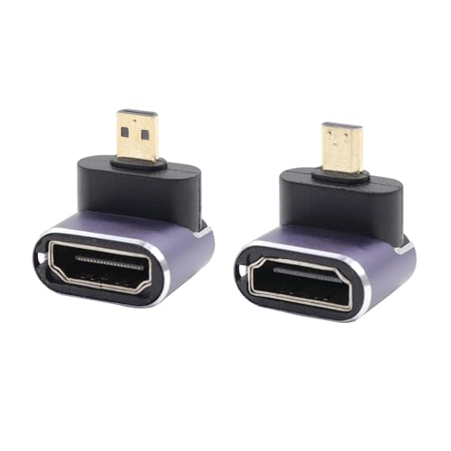RIIEYOCA 90 grader upp och ner vinkel UHD 8K Micro HDMI till HDMI-adapter, standard 48 Gbps High Speed 2.1 förlängare Micro HDMI-kontakt till HDMI-uttag stöd 8K@60Hz,4K@120Hz (2-pack)