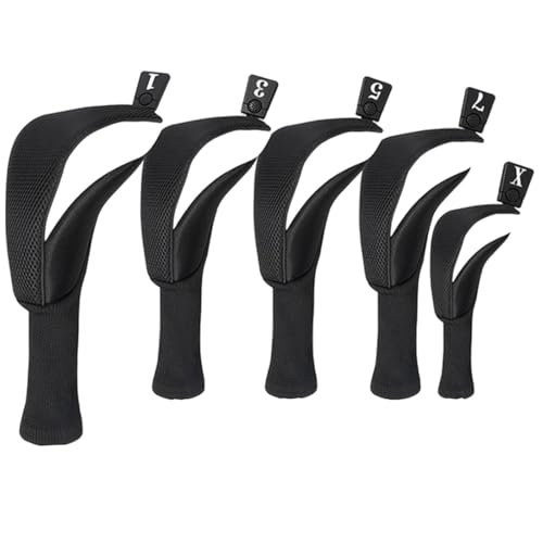 Aizuoni Golf Wood Club Headcovers, Golf Club Head Cover, Skyddande klubböverdrag Långhals Dammtät 5 delar Golf Hybrid Headcover, Nummeretiketter Skyddshuvudskydd Anti-slip trähybridhuvudskydd för