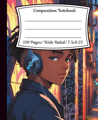 Boy Anime Composition Notebook Headphone Hero: Wide Ruled, 120 pages, 7.5x9.25, Multipurpose Use, Kids ,Teens & Adults