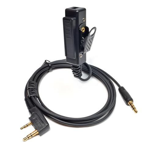 UAYESOK Walkie Talkie Headset adapter, 2-stifts Kenwood till 3,5 mm AUX-ljudgränssnitt kabel, trådlös öronproppar adapter med PTT för Baofeng Kenwood TYT Wouxun Quansheng radio för elektroniska
