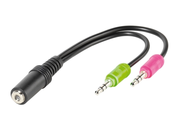 1 x 0,15 m – svart headset Y-adapter, 3,5 mm TRRS-uttag till 2 x 3,5 mm jackkontakt, stereo mikrofon, CTIA, gjuten kontakt