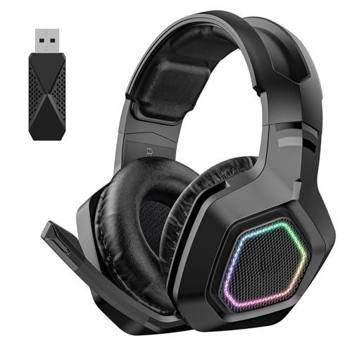 Walfront Wireless Gaming Headset med Bluetooth & 3,5 Mm Wired Connections Lighting Anpassningshuvudet Innehåller 2,4 G Adapter för PC Laptop Mobile (Svart)