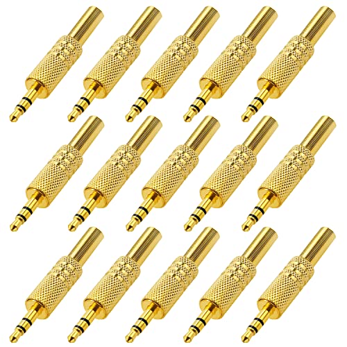 15 Stycken 3.5mm 3 Pole TRS Male Plug, KUOQIY Metal Audio Lodning Hörlursuttag med Fjäder, Metal Audio Soldering Adapter Converter, för Headset Öronsnäcka Hörlurar, Guldpläterade