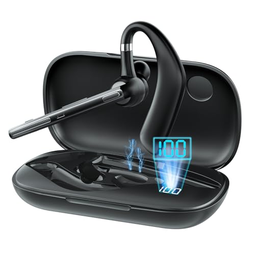 Trådlöst Headset, Bluetooth-hörlur med Ett öra med Brusreducerande Mikrofon, Vridbara öronkrokar och IPX7 Vattentätt, Trådlöst Handsfree-headset för Bilkörning/affärer/kontor