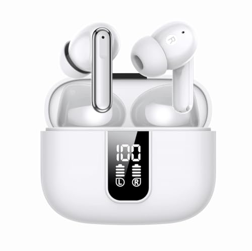 Trådlösa öronsnäckor, Bluetooth 5.3 kraftfull bas äkta trådlösa hörlurar, IPX7 vattentät USB-C-knappkontroll HiFi-ljud i örat CVC8.0 Tech brusreducering hörlurar, ettstegs parning, LED-display headset