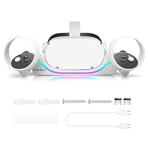 Vakdon USB magnetisk laddningsdockhållare för Quest 2 headset, VR snabbladdningsstation stativ set för Quest 2 headsetladdare med indikatorljus, förvaringsbas för Quest 2-handtag