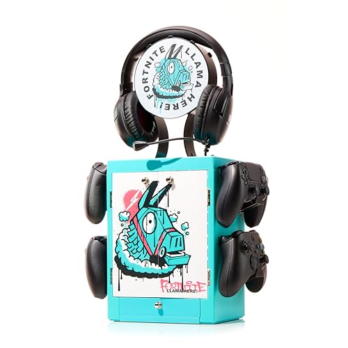 Numskull Fortnite officiellt spelförvaringsskåp - 10 spel-/DVD-stativ, 4 kontroller, headset och tillbehör - kompakt och hållbar organisatör - officiell Fortnite-produkt