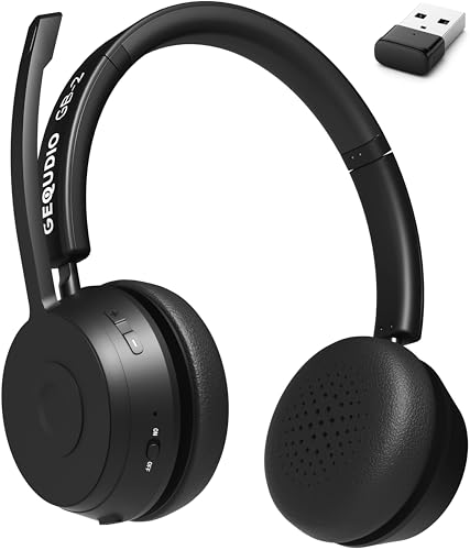 GEQUDIO Bluetooth-headset GB-2, hörlurar med brusreducering på mikrofonen, trådlöst för smartphone, mobiltelefon, PC och trådlöst för IP-telefon GX5+ batteritid 39 h (med USB-adapter)