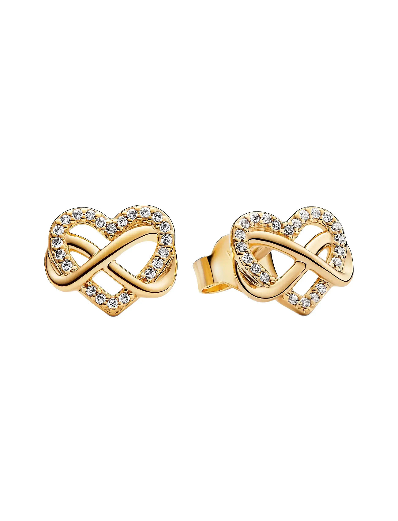 Pandora Infinity Heart 14K Gold-Plated Stud Earrings With Clear Cubic Zirconia Guld