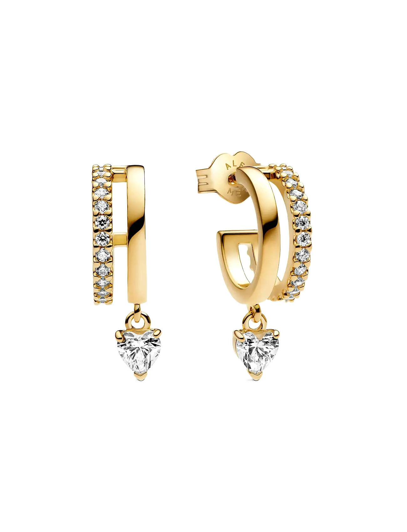 Pandora Heart 14K Gold-Plated Hoop Earrings With Clear Cubic Zirconia Guld