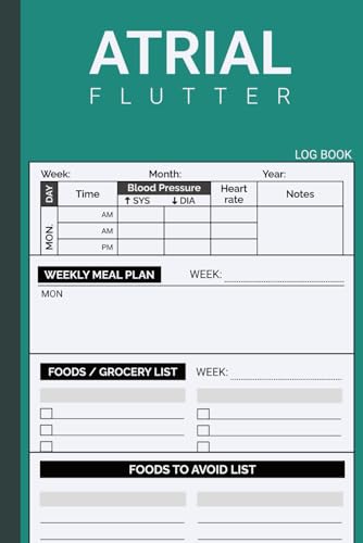 Atrial Flutter (A Flutter): Monitor & Record Blood Pressure and Heart Rate Along WIth Blank Diet Plan - For Arrhythmias / Auricular Flutter / Heart Rhythm Disorder Treatment