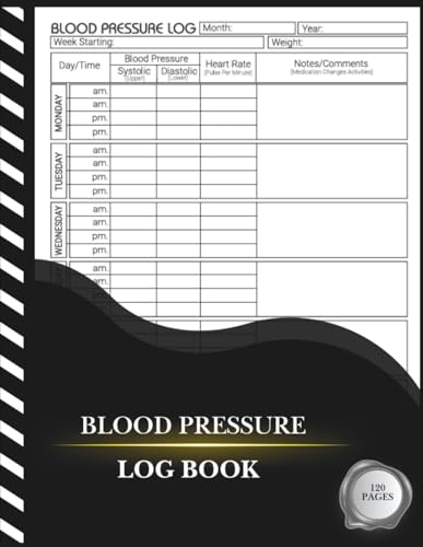 Blood Pressure Log Book: Record and Monitor daily blood pressure, time, and heart rate up to three times a day. The log includes a quick guide at the ... information, emergency contacts, and notes!