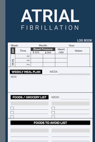 Log Book For Atrial Fibrillation (AFIB) Treatment: Monitor & Track Blood Pressure, Heart Rate Along With Weekly Meal Diet & Grocery Shopping List