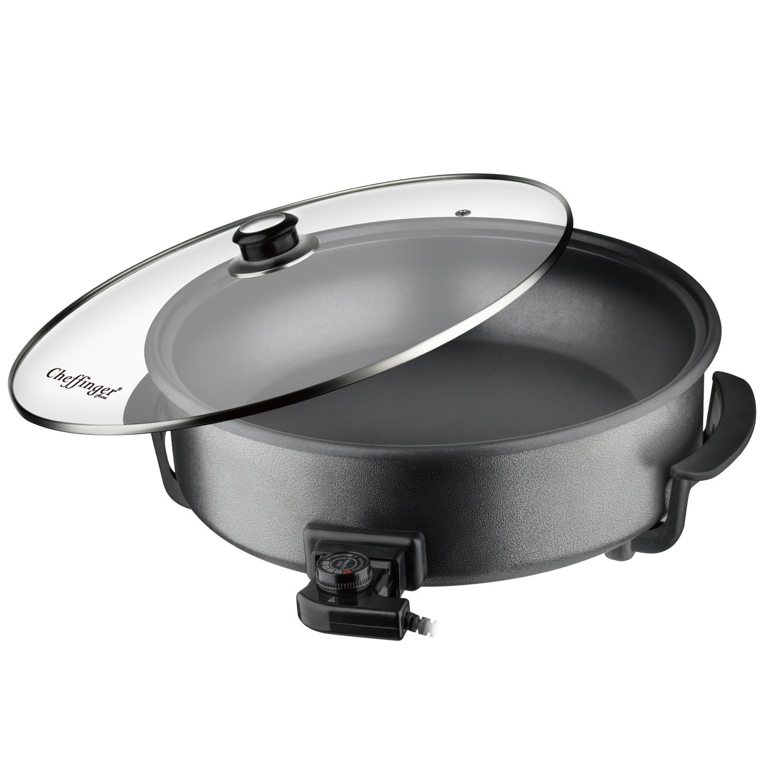 Electric Party Pan with Glass Lid and Non-Stick Coating - Adjustable Heat up to 240degree - 1500W - Ø42cm - Black - Cheffinger