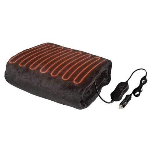 Stalwart Heated Car Blanket - 12V Heated Blanket for Car, Truck, RV or Camping - 59x43 Portable Electric Travel Throw - 2 Heat Levels - Tailgating Essentials (Black)
