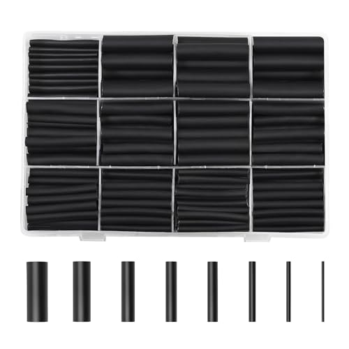 AiQInu 650 stycken krympslang vattentät, krympslangset, värmekrympslang svart, krympslangar med krymphastighet 2:1, krympslang metervara