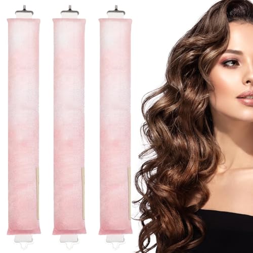 Värmefria papiljotter, hårrullar Värmelösa papiljotter Pannband Hårrullare No Heat Overnight Curls Heatless Curling Rod Overnight Heatless Curlers för långt hår (3 st-rosa)