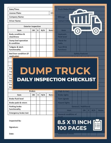 Dump Truck Daily Inspection Checklist: Dumper Truck Pre-Trip and Pre-Start Inspection Report Book | Heavy Duty Vehicle Inspection Journal | 100 Forms