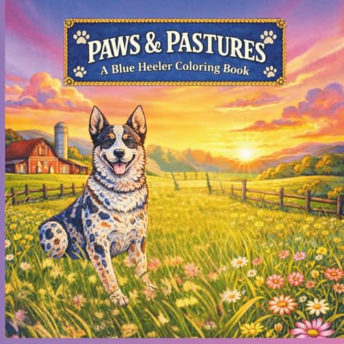 Paws & Pastures: A Blue Heeler Coloring Book: A simple & easy coloring book for kids & adults, Blue heeler fun and adventures