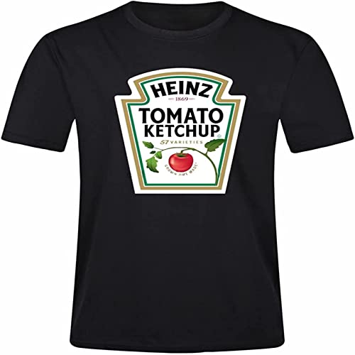 Män t-shirt Heinz Tomat Ketchup etikett mode rund krage t-shirt rolig t-shirt nyhet t-shirt, Svart, L