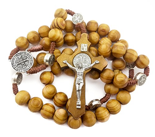 Träpärlor rosenkrans halsband från Nazareth Store med helgonet Benedictus, medalj & katolsk kors, handgjord religiös bönsnodd., En storlek, Trä, trä