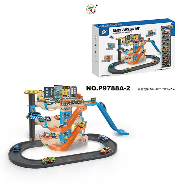 4-våningsparkering med hiss för barn 3+ Bilar helikopter + rutschkana