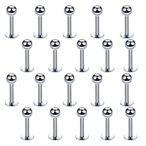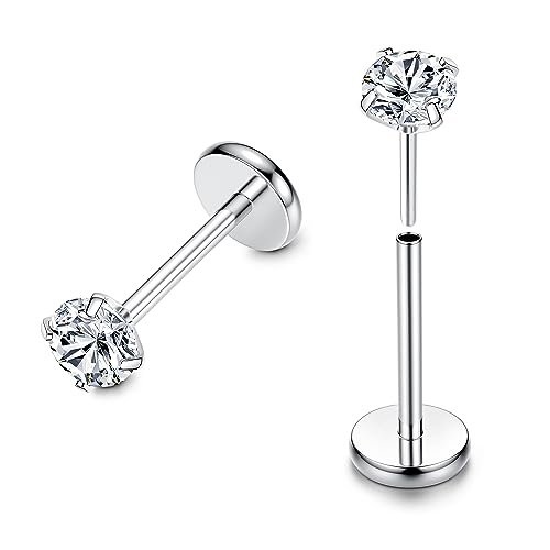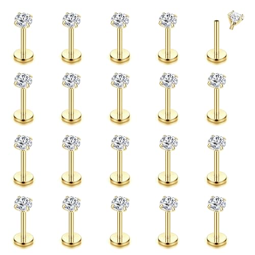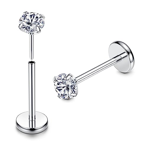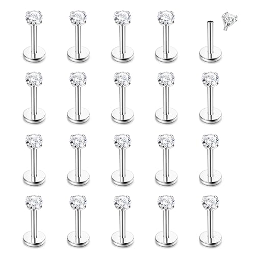 CASSIECA 20 st 16 g allergivänliga läppdubbar labret piercing med 3 mm CZ brosk tragus helix Monroe piercing stift smycken 6 mm 8 mm 10 mm, Rostfritt stål