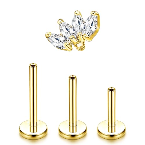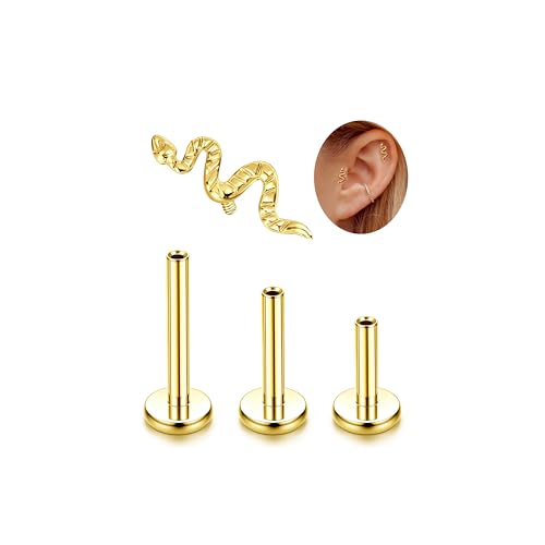 FIOROYAL 4 st 16G G23 titanörhängen platt baksida framåt helix piercing labret dubbar allergivänliga tragus piercing örhängen Cz orm Medusa snäcka helix piercing smycken, Titan
