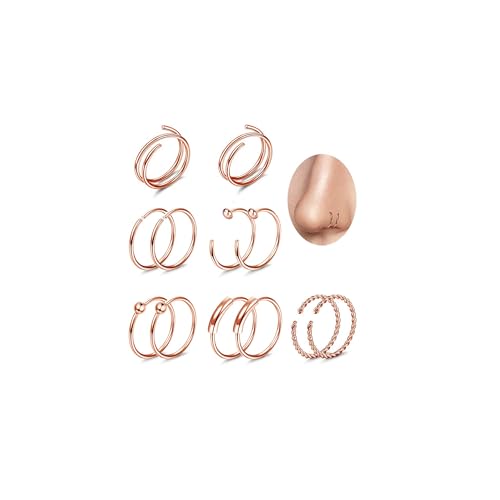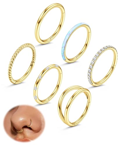 FIOROYAL 6 st 18 g näsringar kirurgiskt stål gångjärn klicker näspiercingar dubbel näsring snäcka tragus ring broskörhängen guld läpp daith rock helix septum piercing smycken 8/10 mm, Rostfritt stål