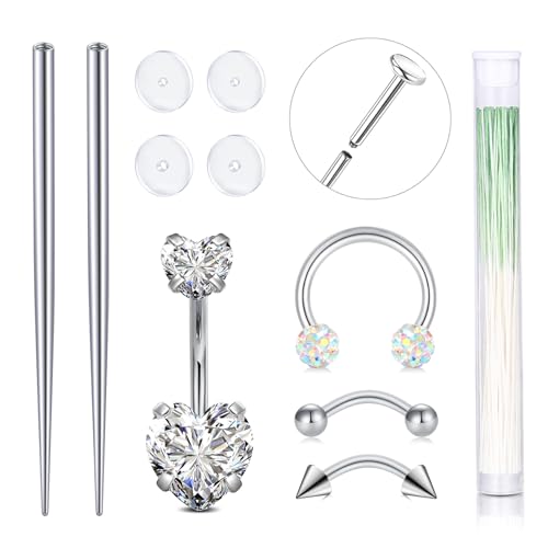 WillTen 100 st piercingkit för alla piercingar, 12G, 14G, 16G, septum, navelpiercing, läpp, brosk, öra, tragus, helix, piercing, smycken, clip-verktygssats för kvinnor, Metall