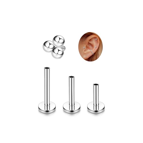 Adramata G23 Titan Helix Piercing Smycken Broskörhängen Internt Skruvad Platt Baksida Öronpiercing Labret Conch Piercing Hypoallergen Helix Örhängen Silver Guld Traguspiercing, Titan