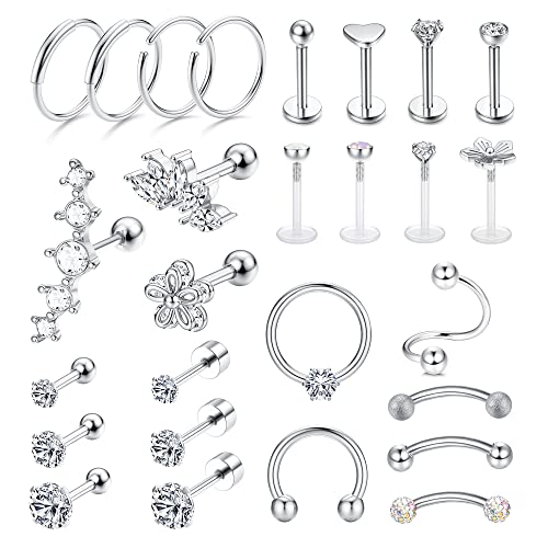 Chriscoco 24 st 16 g tragus piercing smycken rostfritt stål broskörhängen näsring septum ring labret läppsnäcka tragus ring stud örhänge set för flera piercingar helix piercing smycken, rostfritt