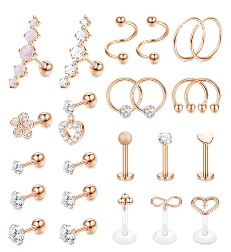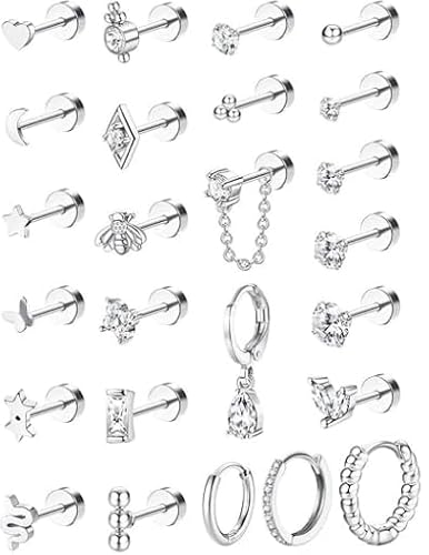 FIOROYAL 27 st Helix Piercing Örhängen Hypoallergena Kirurgiska Stålörhängen För Kvinnor Män Små Cz Platta ryggörhängen Brosk Helix Hoop Kedjepiercing Tragus Örhänge Piercing Smycken a