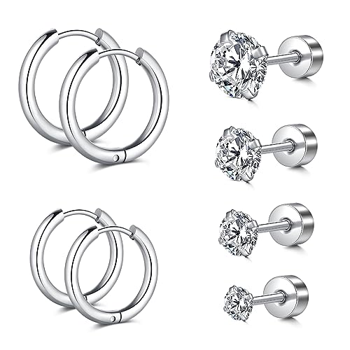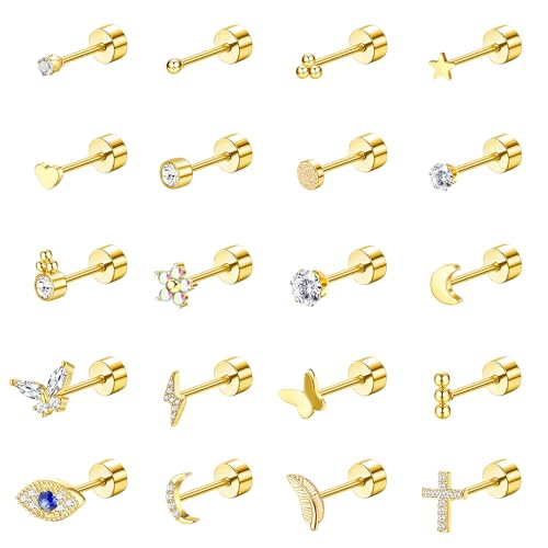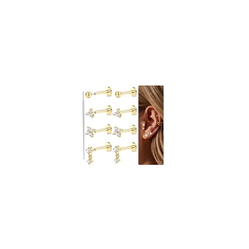 KALVICA örhängen med platt rygg för kvinnor allergivänliga kirurgiska stålörhängen set CZ små broskörhängen helix piercing smycken skruv tillbaka örhängen 20 g, Rostfritt stål
