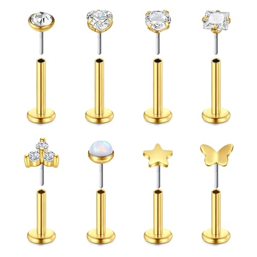 FIOROYAL G23 Titan Lip Piercing Nose Stud, 16G 20G Gänga Push in Medusa piercing CZ opal platt piercing öra 6/8 mm helix piercing silver helix conch labret tragus näspiercing smycken, Titan