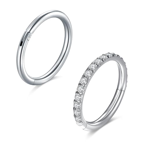 FIOROYAL 2 st G23 Titanium Nos Ring Hoop Örhängen Septum Piercing för Kvinnor Män 16G Teardrop Gångjärn Clicker Guld Septum Ring Hypoallergena Daith Helix Tragus Piercing Smycken 10mm G