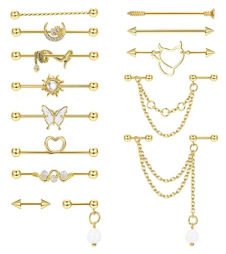 ADRAMATA 14G 16G Industriell Piercing Kirurgiskt Stål Bar Byggnadsställningar Smycken Örhängen Skivstång Brosk Helix