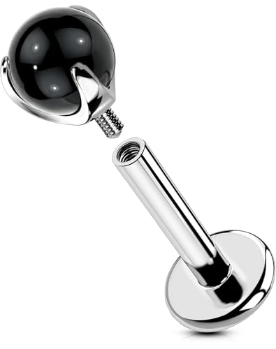 OUFER Kroppspiercing helix piercing smycken internt labret läppstift örhänge bar 16 g tragus örhänge titan snäcka piercing stift, 6mm, Titan, Obsidian