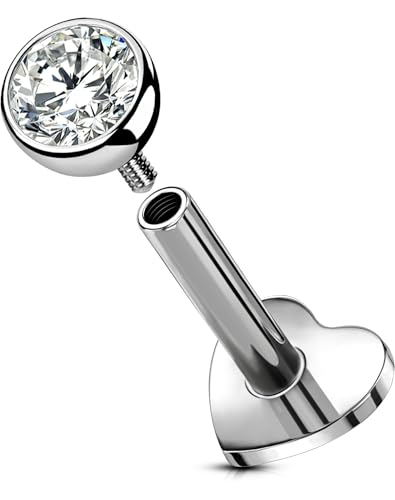 OUFER Kroppspiercing 16 g internt titan läpppiercing smycken klar CZ helix örhänge labret piercing smycken tragus snäcka knopp broskörhängen, 12mm, Titan, Kubisk zirkon