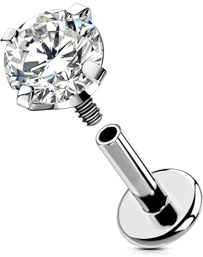 OUFER Kroppspiercing trådlösa push-in läppstänger labret piercing titan 6 mm/8 mm/10 mm/12 mm helix tragus örhänge piercing smycken 16 g CZ tragus helix conch läpppiercing stänger, 6mm, Titan