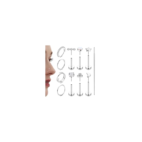 Adramata 12 Stycken 16g Septum och Näsring Set i Kirurgiskt Stål - Brosk Piercing med CZ Opal för Daith och Helix - Örhänge Smycken