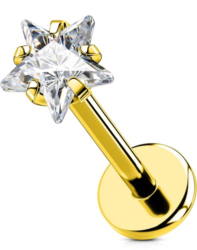 AVYRING Tragusörhängen, 16 g 6 mm 8 mm silver guld rostfritt stål läppstång trådlös läppstift set med stjärna, fjäril, måne, hjärta CZ brosk labret helix piercing smycken, Rostfritt stål