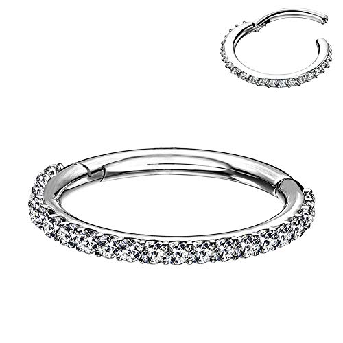 OUFER Näsringar septum 16 g 316L rostfritt stål gångjärn segmentklickare klar CZ stenlagda broskörhängen ring helix tragus daith-piercing smycken e rostfritt stål, colore: Stål 16 g/8 mm, cod. CART079-2