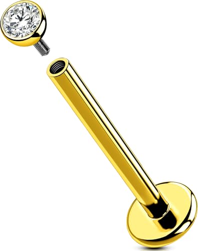 ADRAMATA 14K guldfyllda trådlösa näsdubbar CZ näsringar för kvinnor män 316L kirurgiskt stål labret nitar läppringar tryck in platt rygg stiftörhängen CZ näsa näsborre tragus helix piercing smycken,