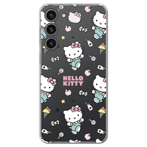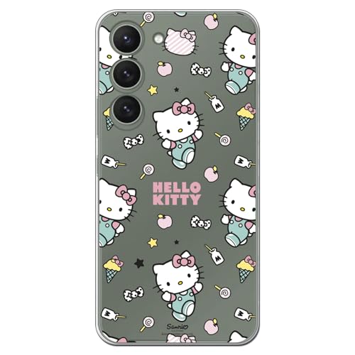 Personalaizer Transparent flexibelt silikonfodral för Samsung Galaxy S23 med Hello Kitty-mönster och klistermärkemönster - Kawaii stil - TPU-fodral
