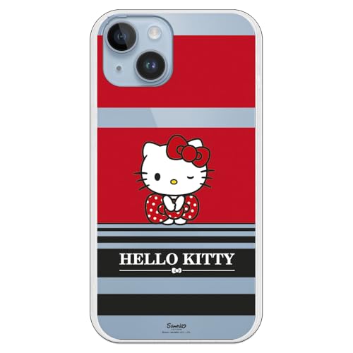 Personalaizer Flexibelt fodral, kompatibelt med iPhone 15 Plus Hello Kitty med svarta och röda ränder